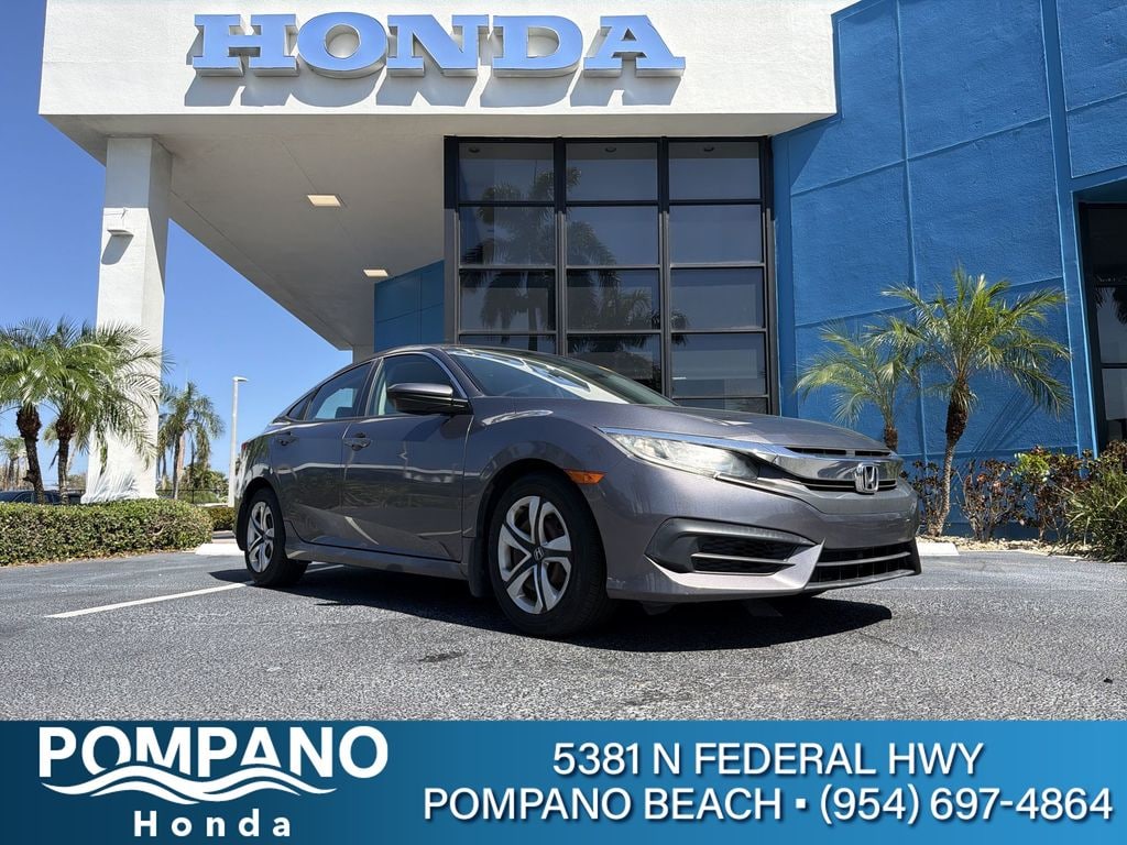 2017 Honda Civic LX Modern Steel Metallic Discover the difference at Pompano Honda!!! The Honda store that gives you MORE!!!, Family Owned and operated since 1975!!!, Value pricing made us #1, customer service keeps us there!!!, HOME DELIVERY!! OUT OF STATE DELIVERIES WELCOMED!!!, Black/Gray w/Cloth Seat Trim.